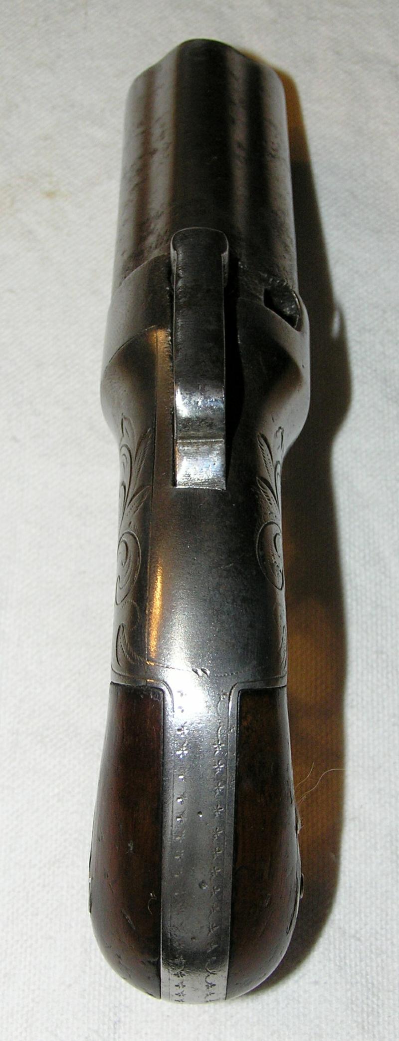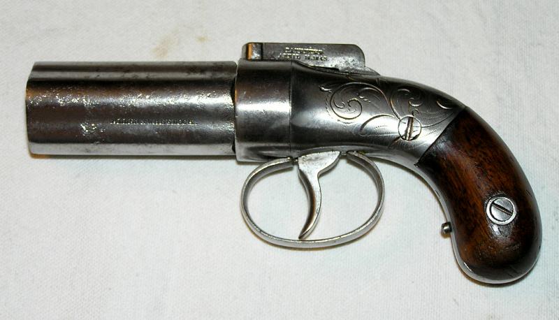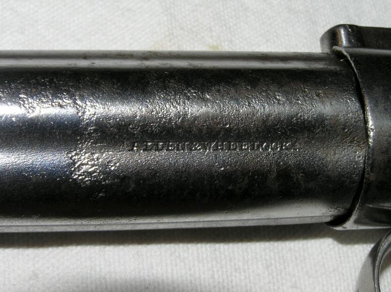 Factory engraved frame, marked "Allen & Wheelock" on barrel, patent date on bar hammer. The barrel has fine pitting. Mechanically in good working condition. All metal has been cleaned bright. The wood grips are in good condition.