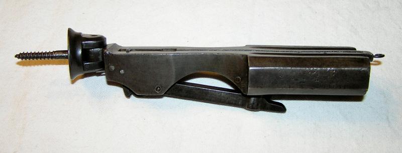 Very rare 3 barrel animal trap gun/buglar alarm. Marked on the hammer. Lettering is perfect. Patented 1861. The gun is in good working order.