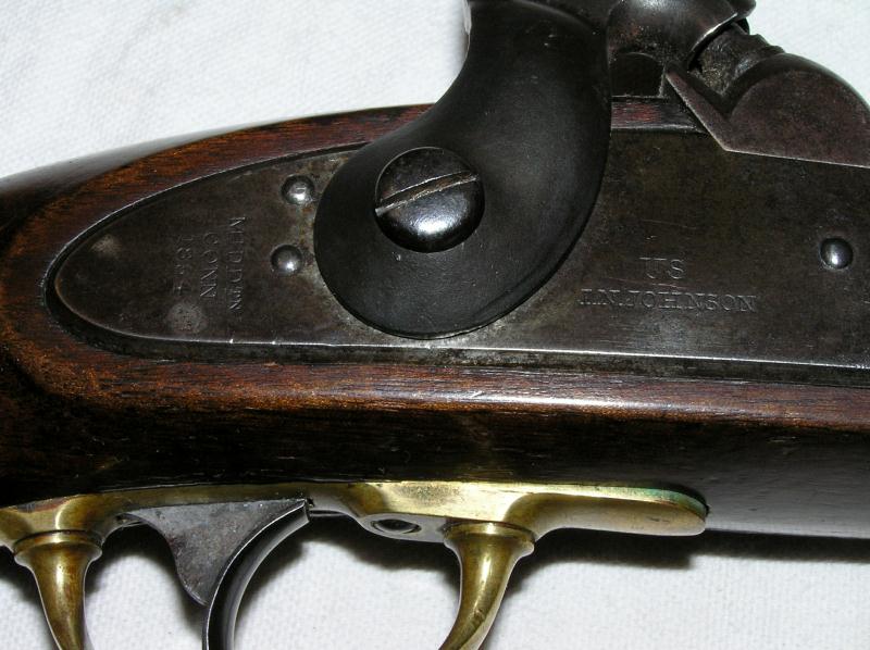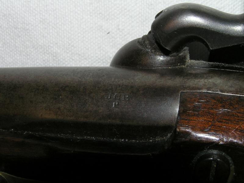 This gun has 2 cartouches with all markings highly visible. Nice color to the brass hardware. The wood is in very good condition with minor grain crack in butt.