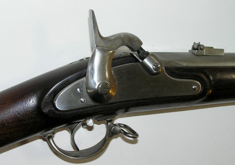 Serson & Roberts contract musket dated 1862, this is one of 5,140 originally manufactured. The bore is in mint condition, lock plate marked “US” over “NY” “1862” with eagle motif, metal is arsenal bright, just starting to darken, no cartouche, no date or vp eagle at breech which is correct for this musket, tang of butt plate marked “US”, stock in overall good condition, unusual gun to find in this condition